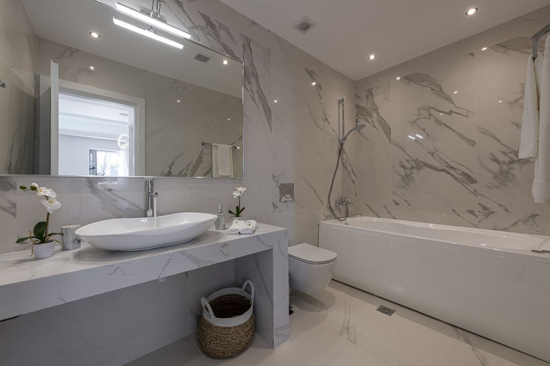 На вилле предусмотрены все бытовые удобства: прачечная, кладовая, гостевой туалет, отдельный доступ к технической зоне и парковке.