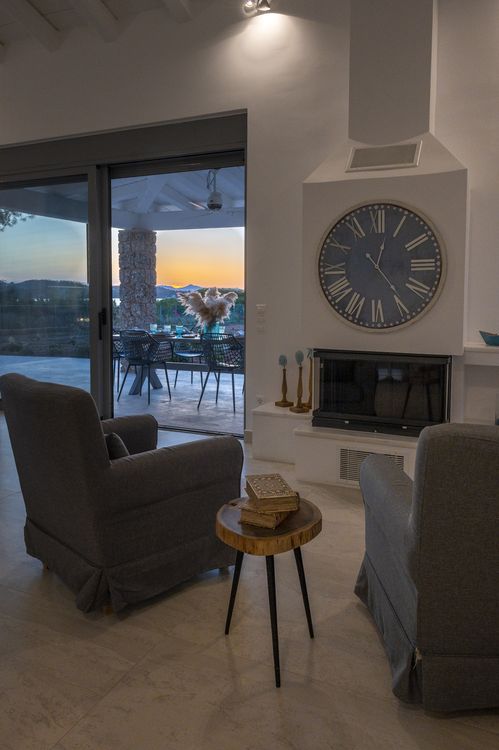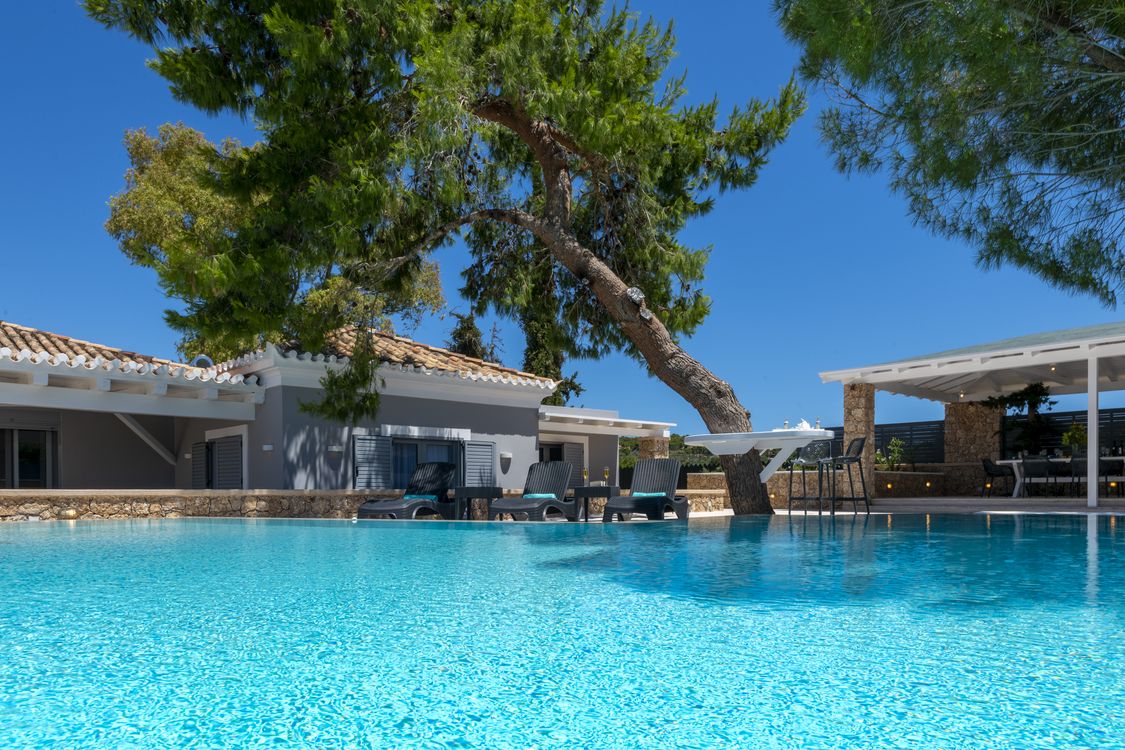 Современный оазис с видом на море, сосны и горизонт Порто Хели.