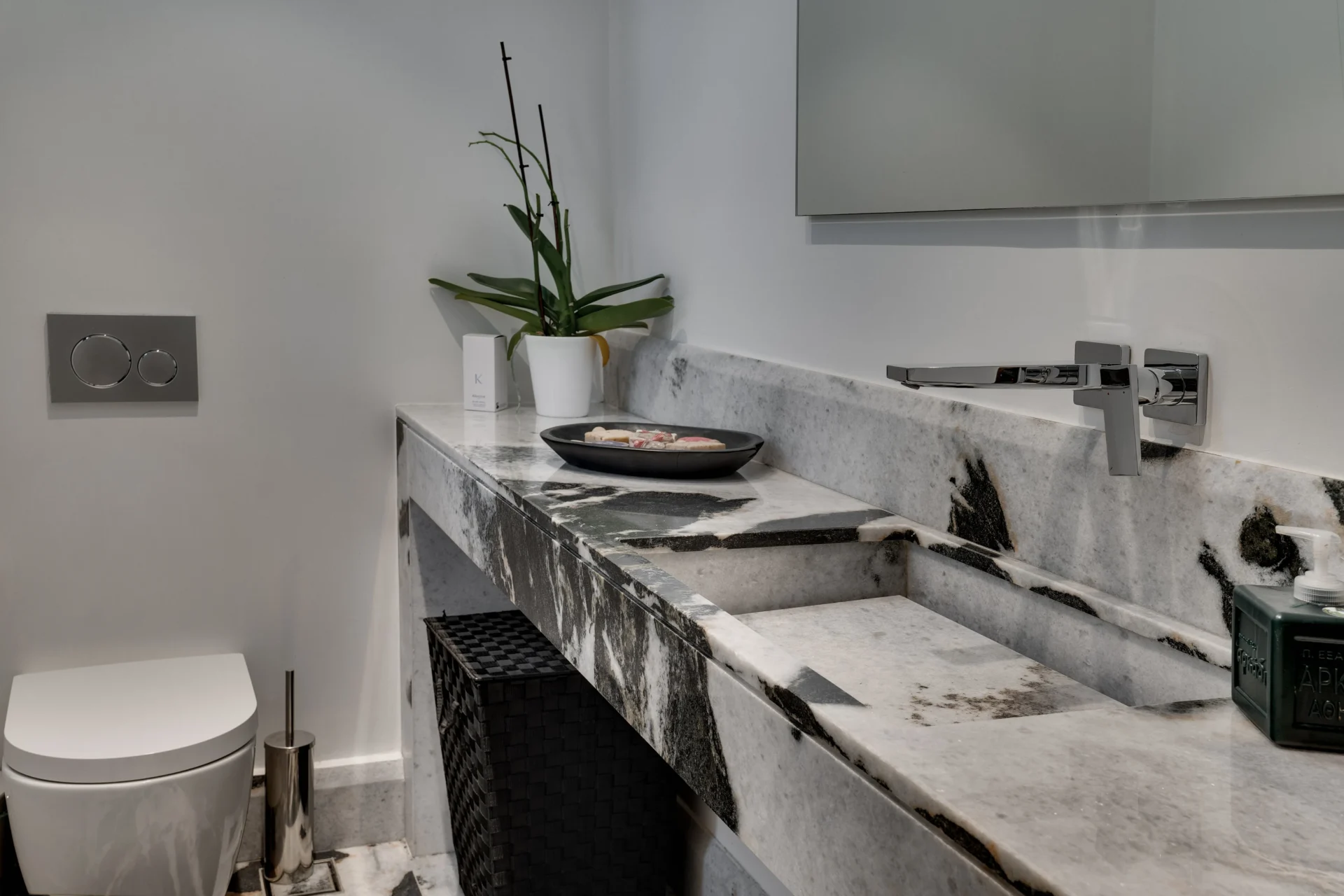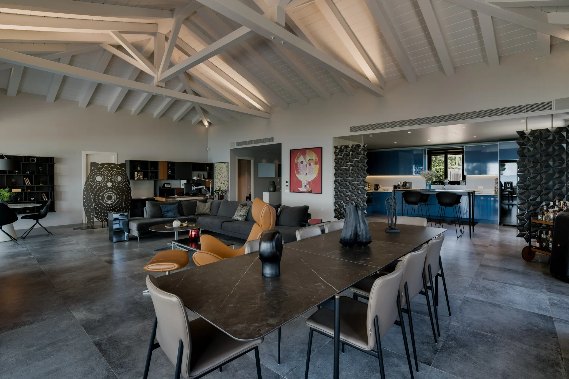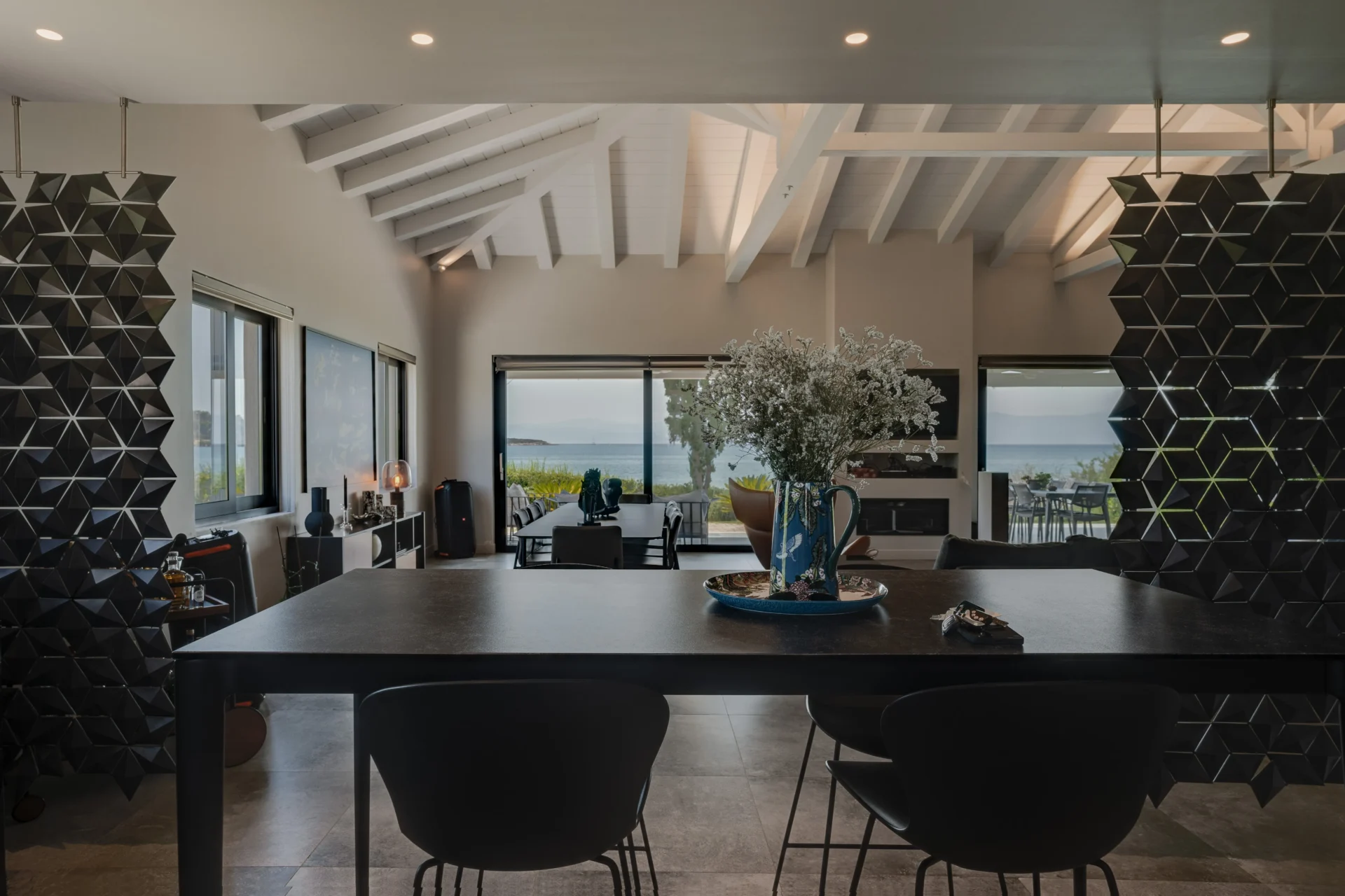 Вилла построена в современном минималистском стиле, с акцентом на натуральные материалы, гармонирующие с природным окружением. Общая жилая площадь составляет 334 м², включая четыре просторные спальни с индивидуальными ванными комнатами, дизайнерскую кухню открытого типа, элегантную гостиную и несколько зон для обеда внутри и на свежем воздухе.
