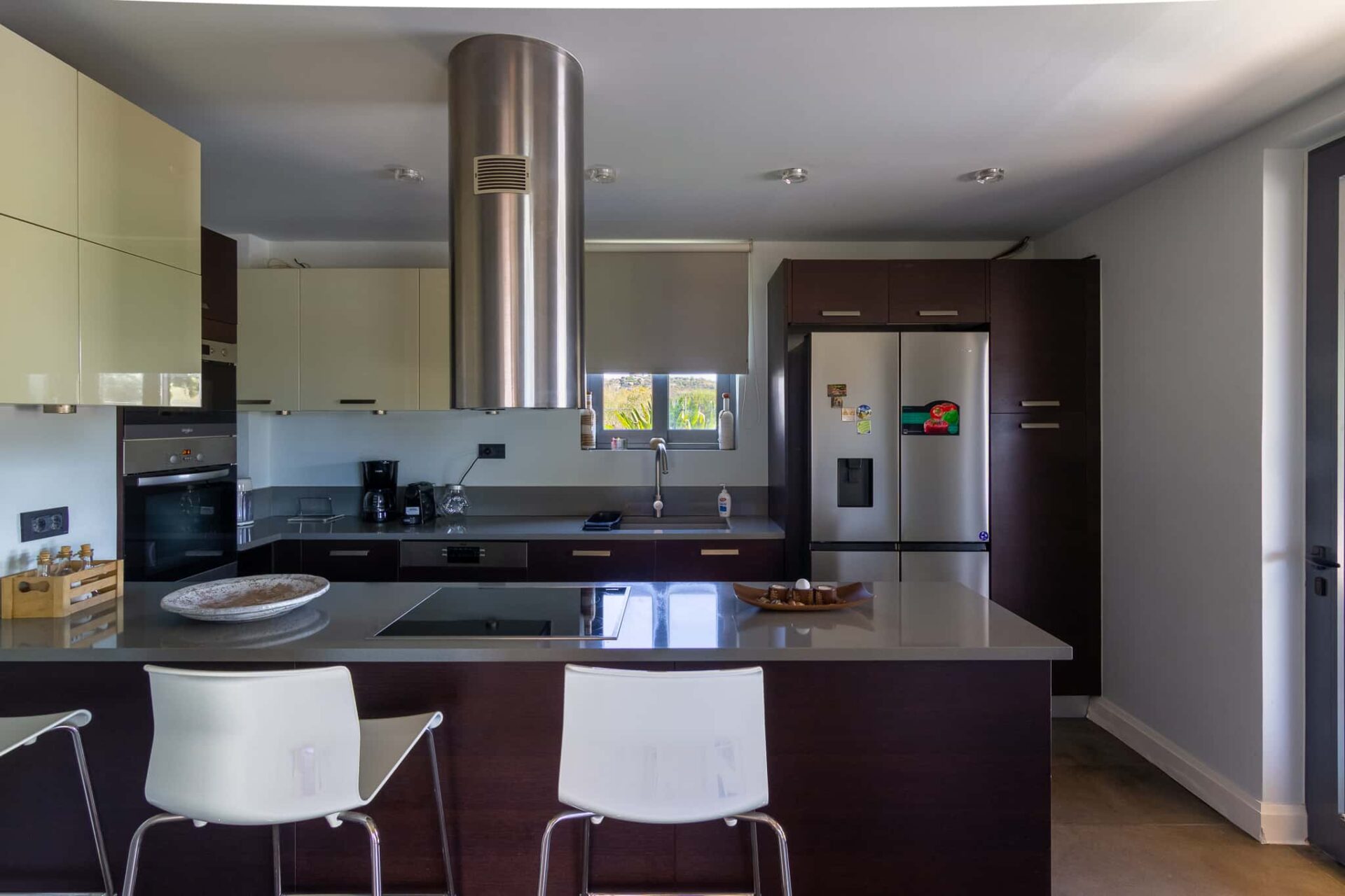 Главный акцент виллы - винный погреб, вырезанный в скале. Биометрическая система доступа, идеальная влажность и температура делают его не только дизайнерской находкой, но и функциональным пространством для хранения коллекционного вина.