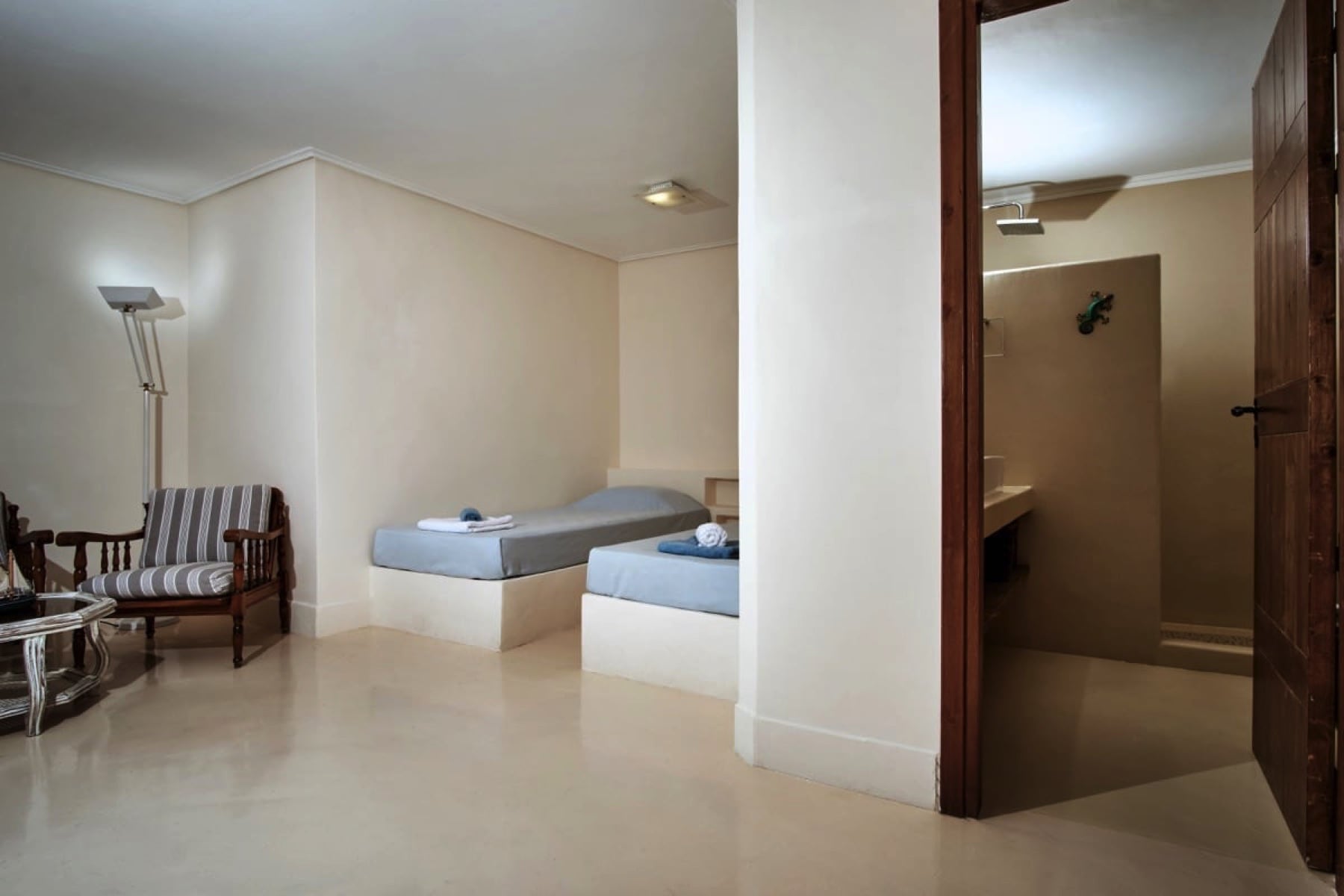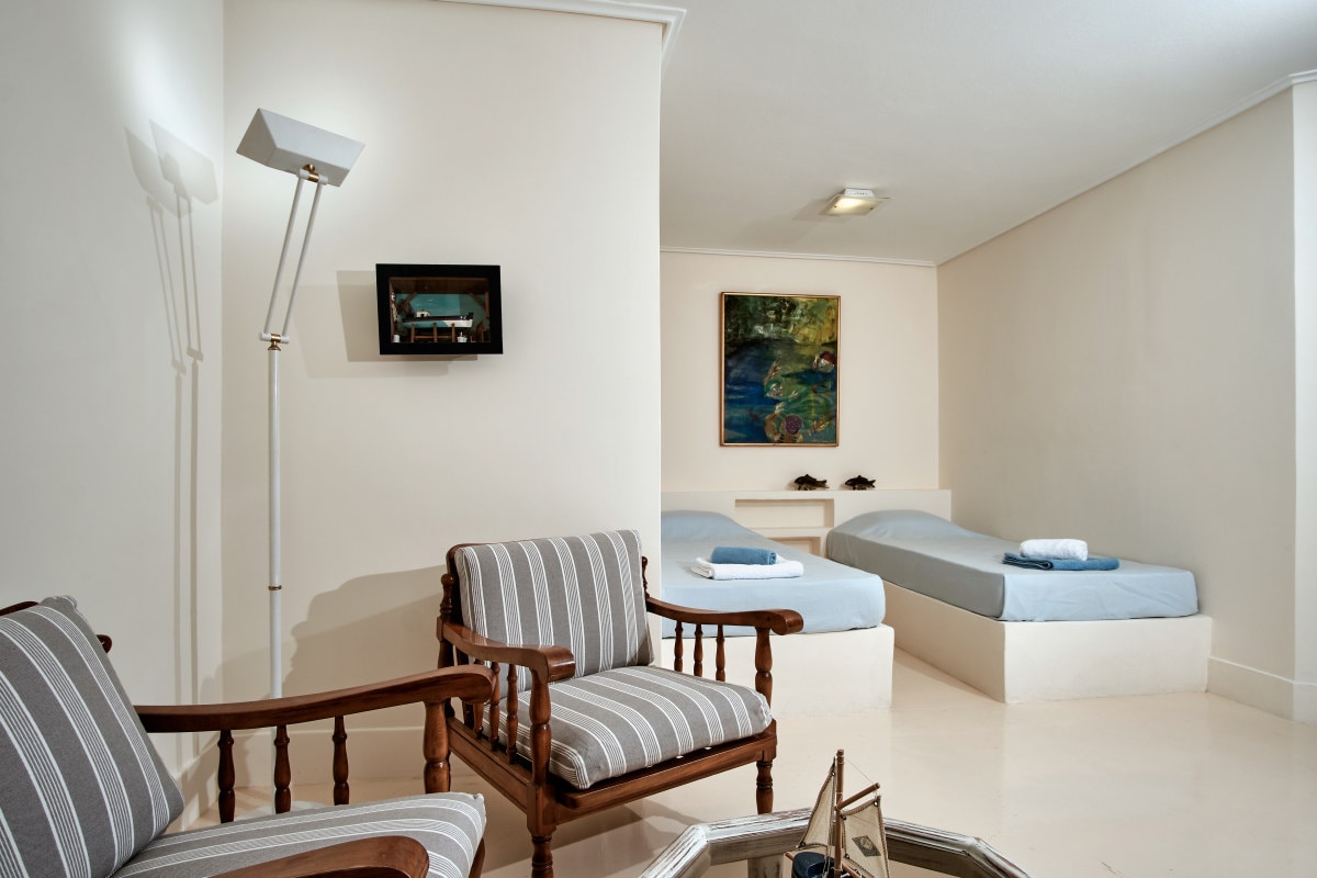 Вилла включает главную спальню с ванной комнатой и видом на залив, две пары апартаментов с двумя комнатами каждый и студию с отдельным входом и патио. Номера с видом на море и сад — каждый гость найдет здесь комфортное пространство.