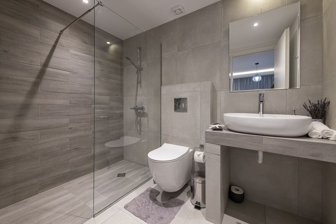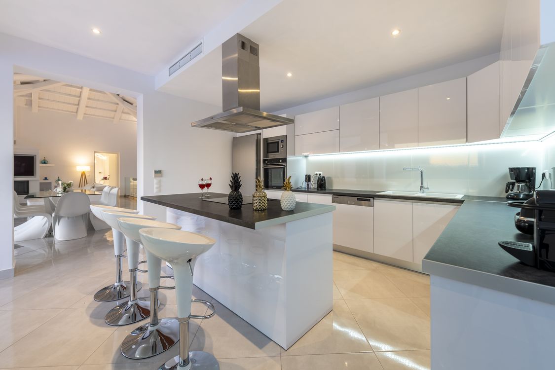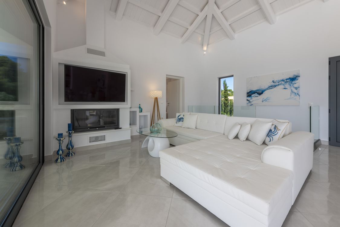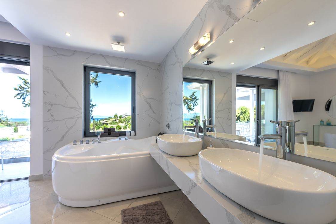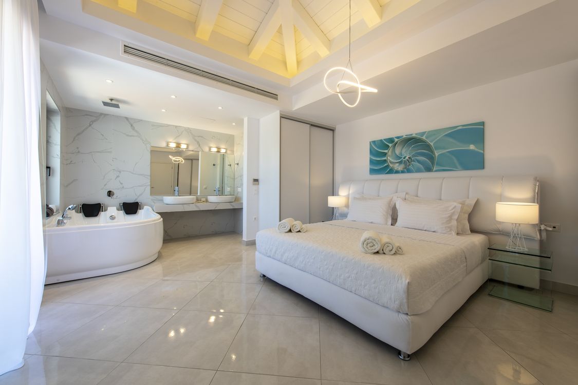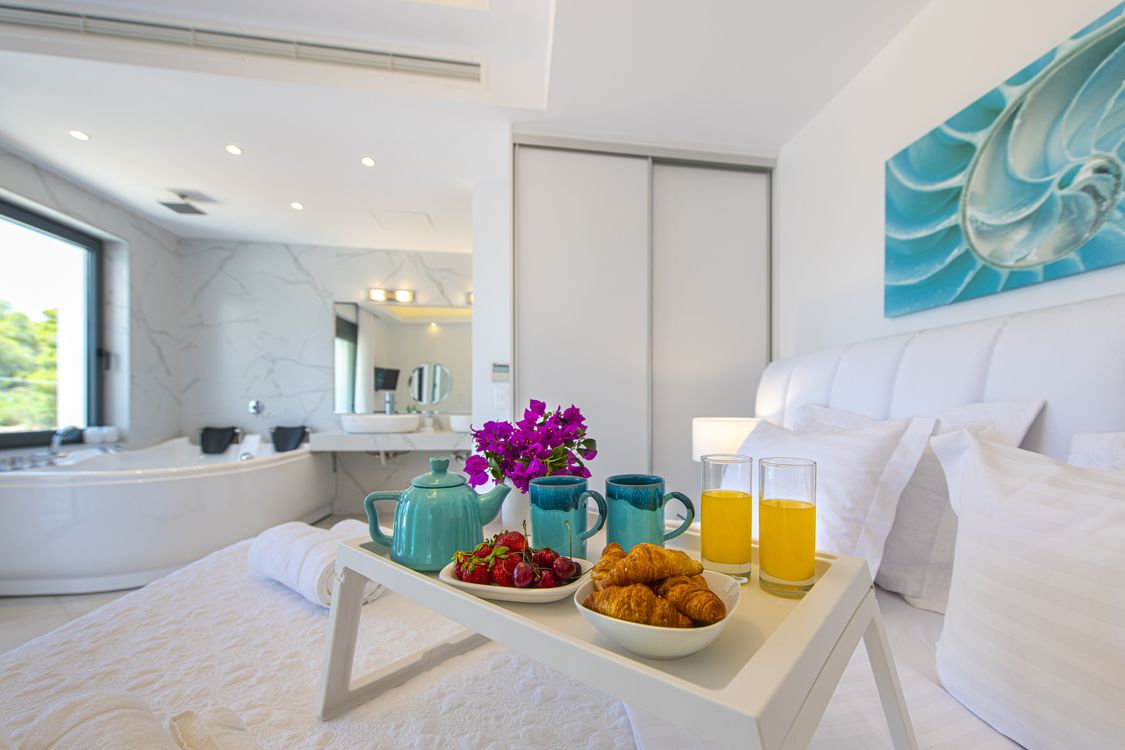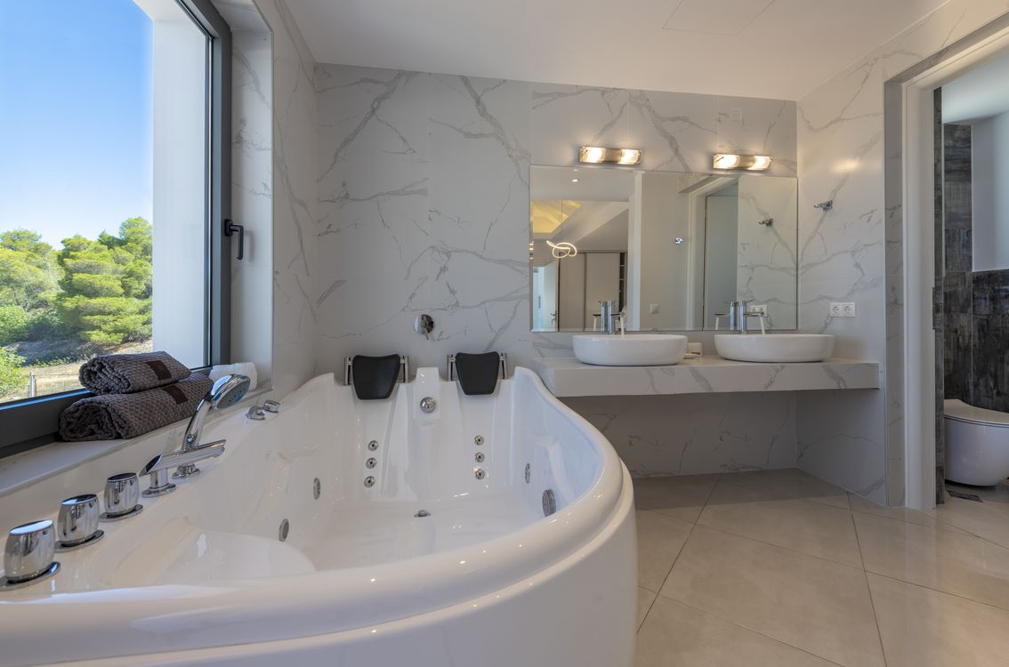 - Main level: a master bedroom with jacuzzi and breathtaking sea views, a bright living room with fireplace, a dining area, and a fully equipped kitchen overlooking the infinity pool, as well as a guest WC.