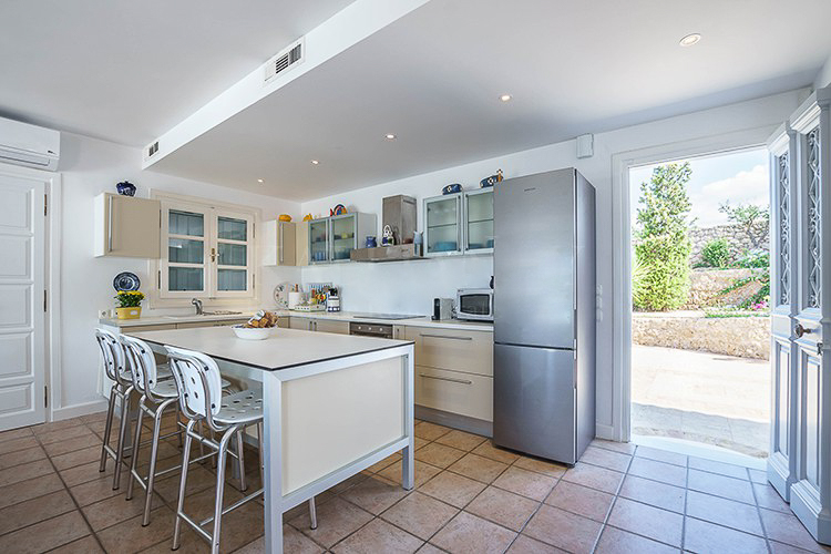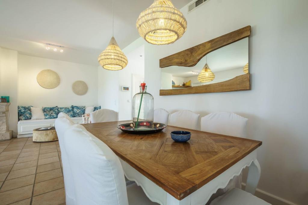 At the heart of the property is a generous swimming pool with sun loungers, complemented by a relaxing entertainment area with a bar, barbecue, and oven, all set on one green-filled level. Just below, a private path leads directly to the beach, where crystal-clear waters and peaceful morning swims become a daily ritual.