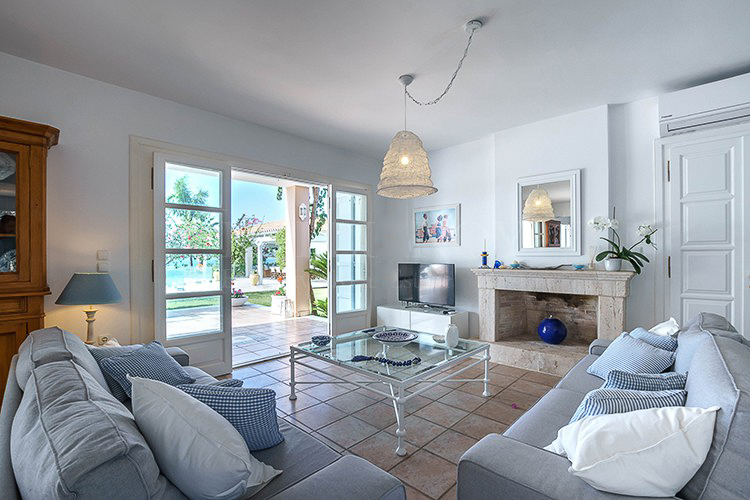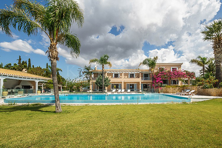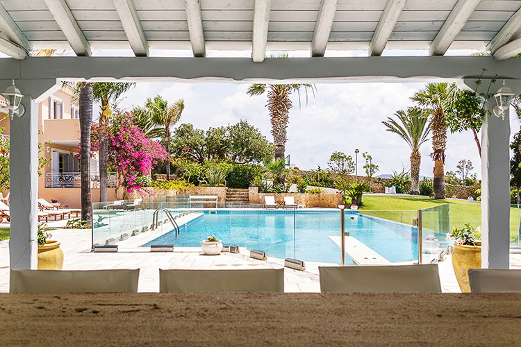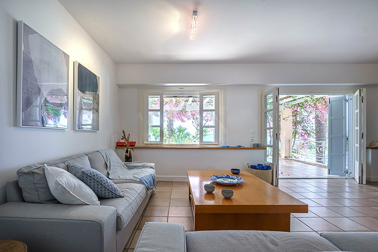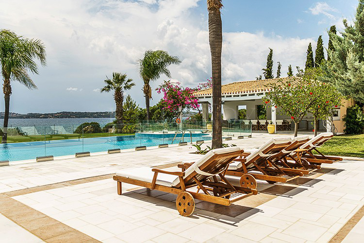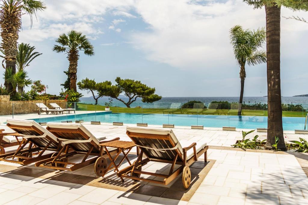 Surrounded by palm trees, a lush green lawn, and views of the islands of Hydra and Dokos, this elegant villa feels like a secluded private resort where the entire space is exclusively yours.