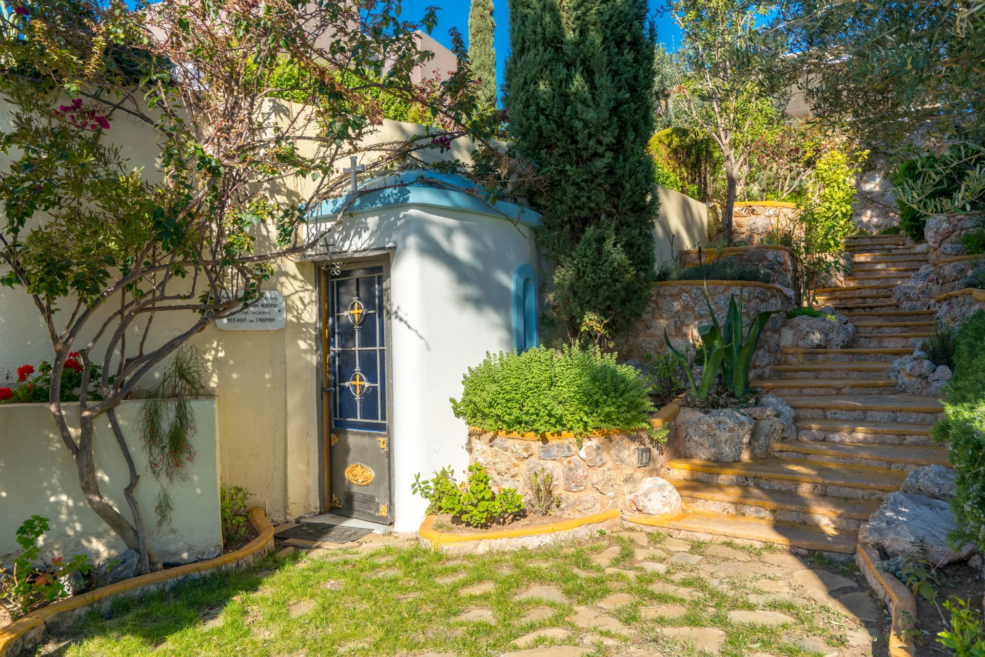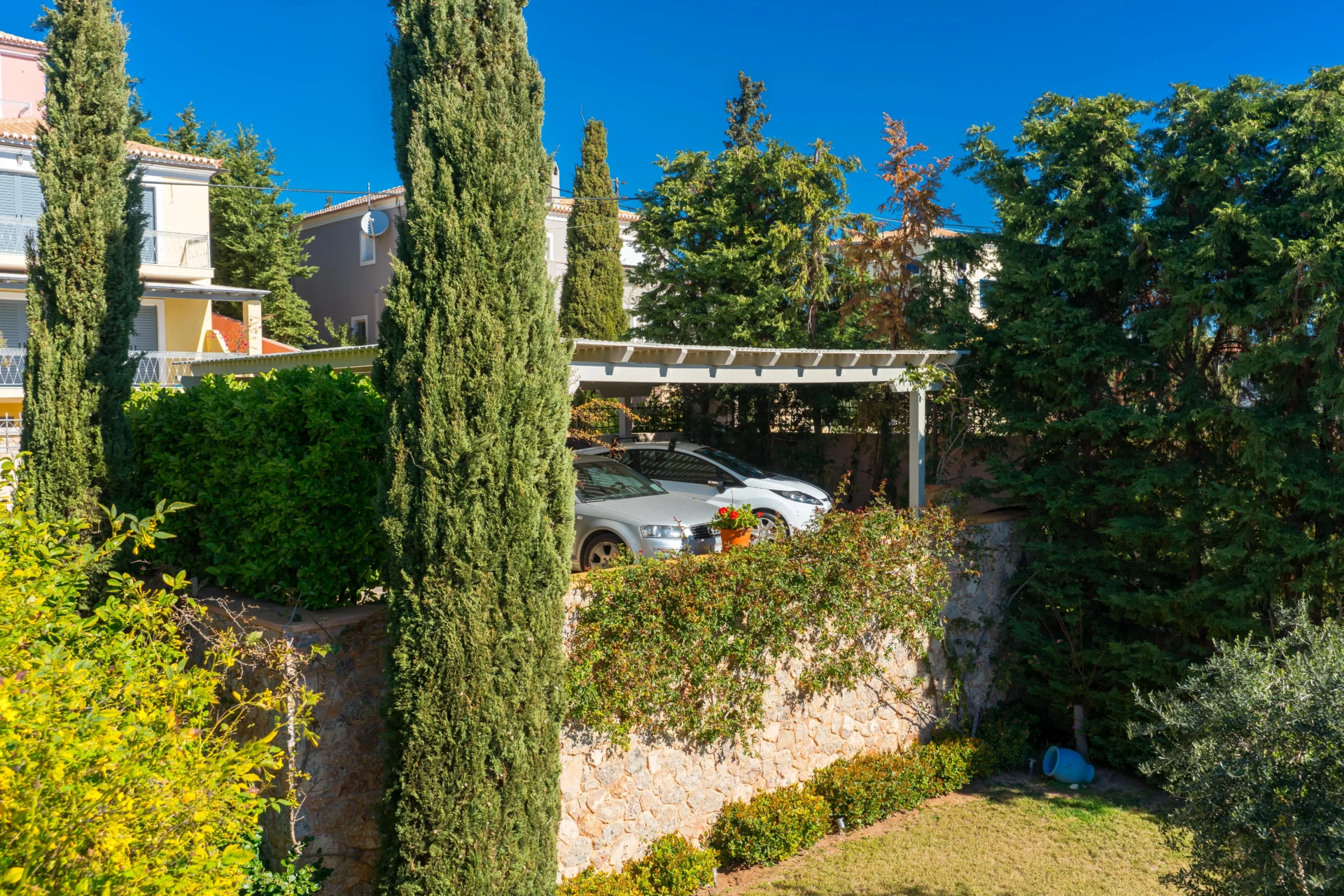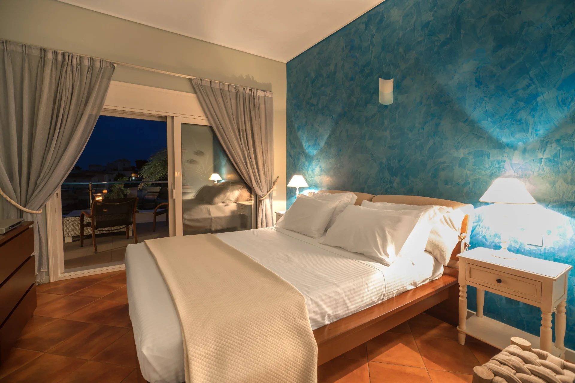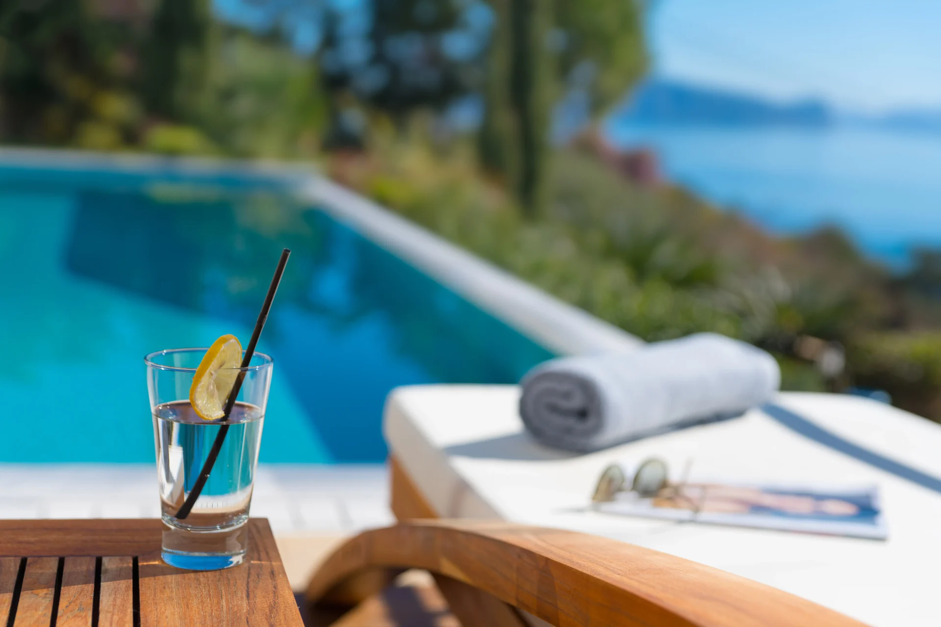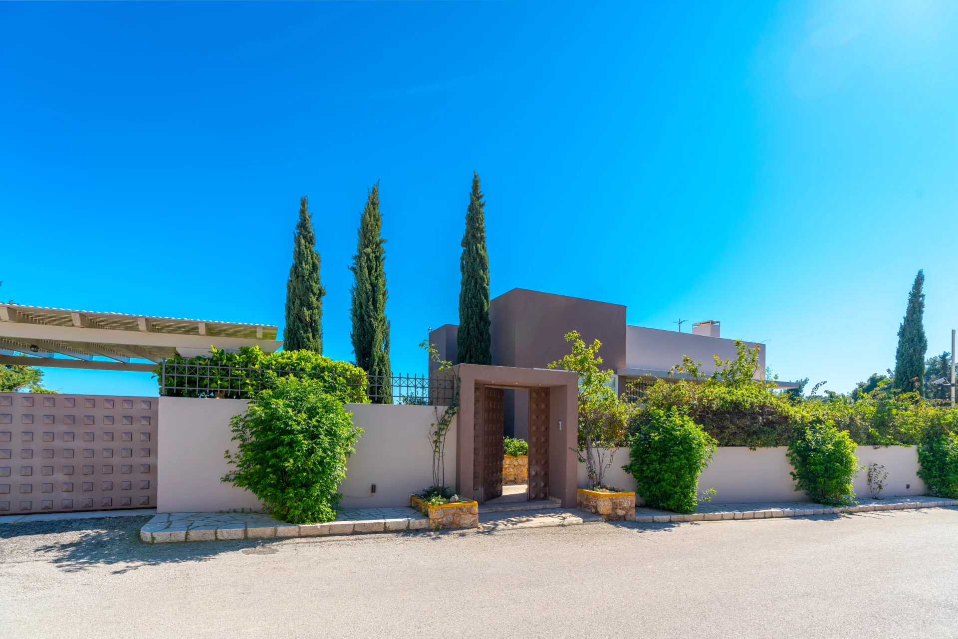 The landscaped infinity pool with sea views, secluded garden corners, the scent of citrus trees, vineyards, and palms — all create a sense of a true Greek retreat. In the evening, the villa becomes an ideal setting for dinner, a glass of wine, and stargazing.